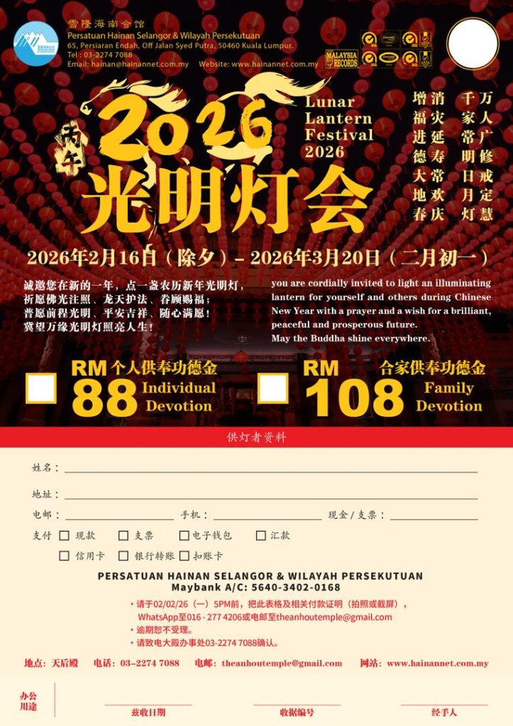 2026“平安灯” 谢灯仪式 – 素食午餐(盒饭式)结缘