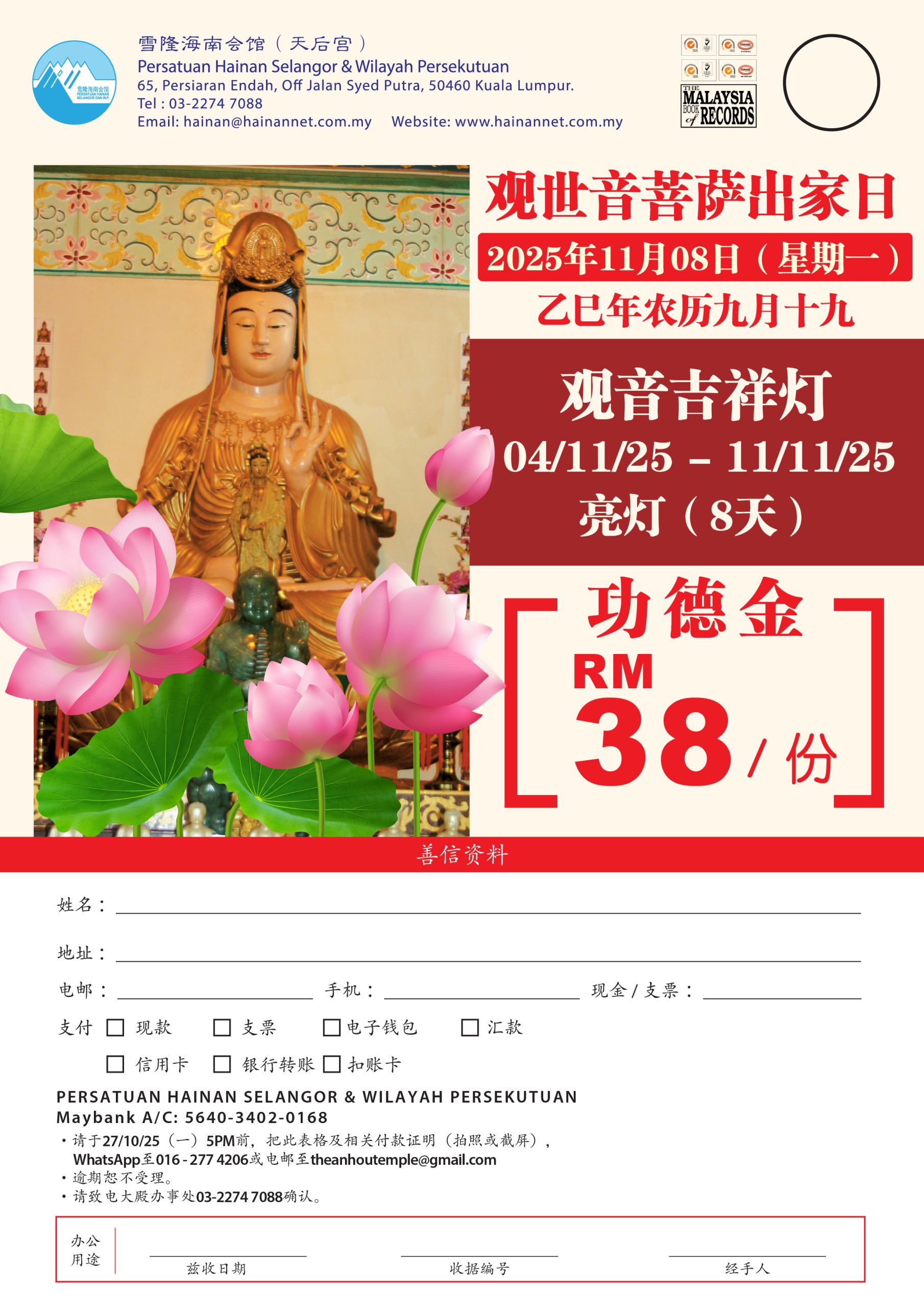 雪隆海南会馆(天后宫)佛学会,将于2025年11月23日至29日, 一连7天在雪隆海南会馆(天后宫)…
