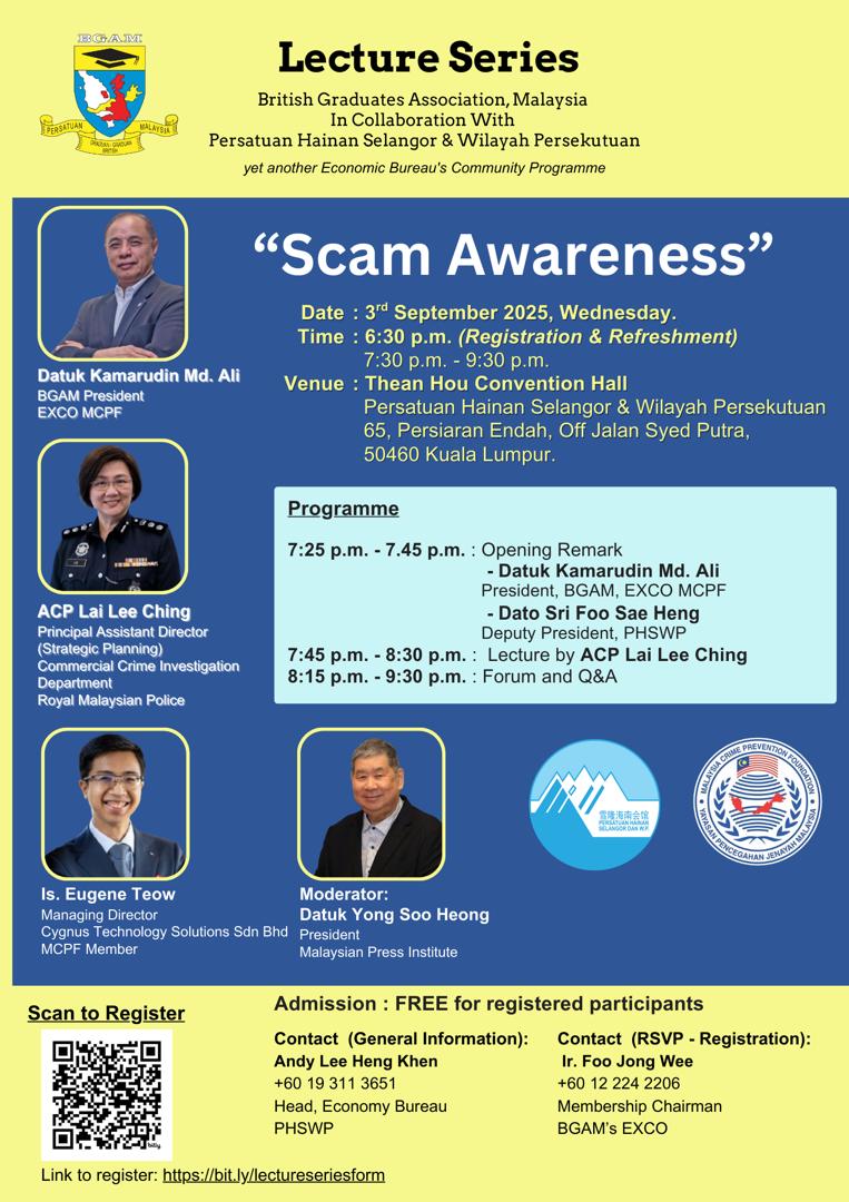 2025年9月4日讯,雪隆海南会馆经济组携手马来西亚英国大学毕业生协会(BGAM)主办的一场主题为 …