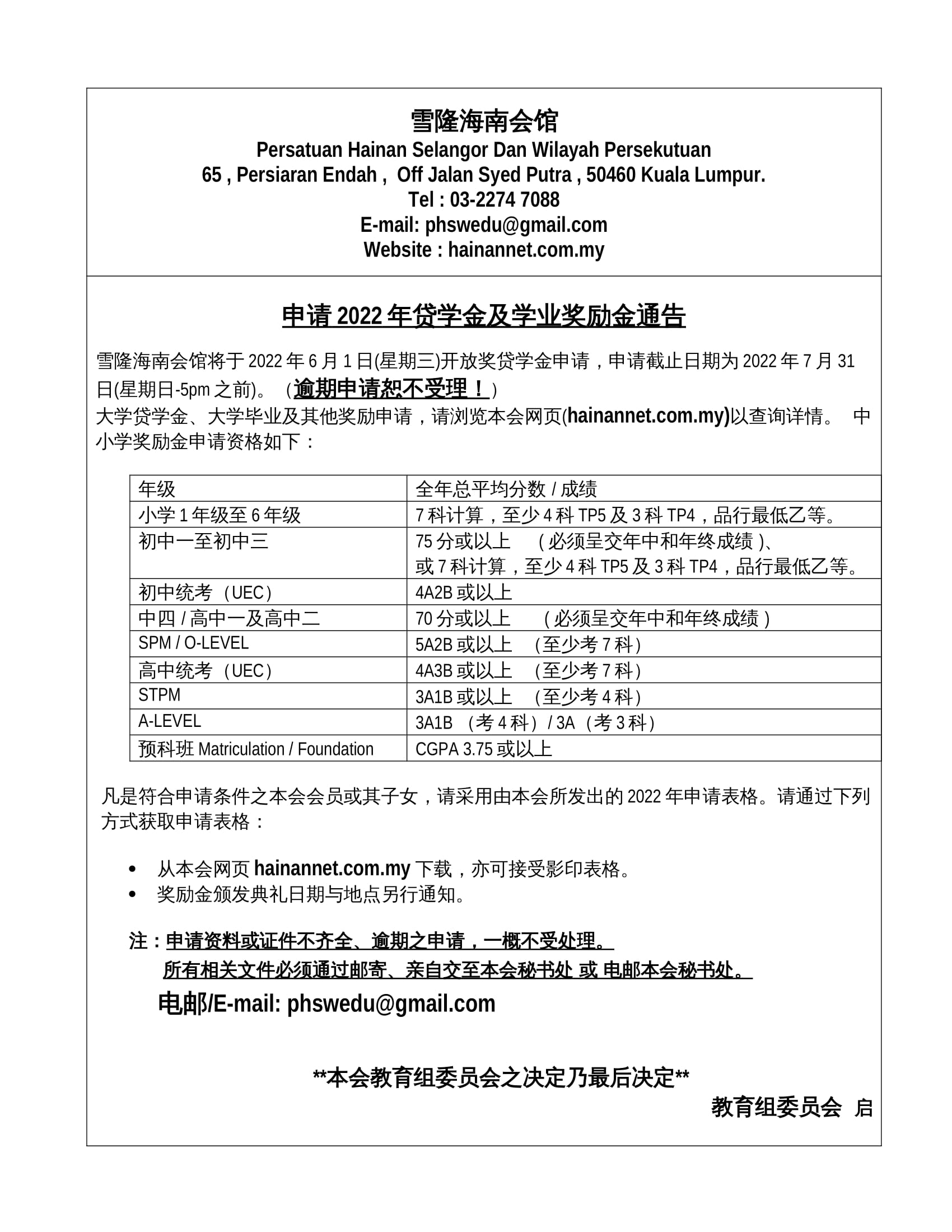 The Selangor and Federal Territory Association has opened applications for scholarships and study loans for member’s children on June 1, 2023 (Thursday). The deadline for application is June 30, 2023 (Friday). Late applications will not be accepted. Click on website link as below for application forms, rules and regulations: Scholarship…
