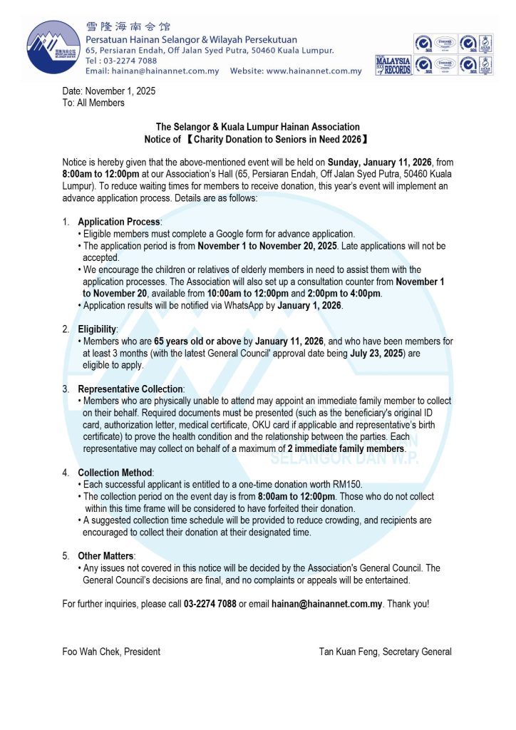 Please click the link below to download electronic version of 2022 Annual Report for The Selangor & Federal Territory Hainan Association. The Selangor&Federal Territory…
